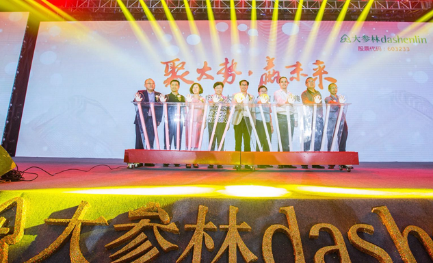 新宝GG药业集团董事长刘景萍女士与大参林医药集团董事长柯云峰先生、中国医药商业协会执行会长付明仲女士等嘉宾共同开启了“聚大势•赢未来"大参林工商合作峰会的大幕。